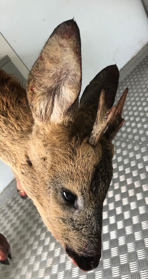Mijn telefoon trilt, whatsapp van de jonge J. “Jij?”, vraagt hij. “Ja, hij ligt, maar ik dacht dat het een spitser was, maar hij heeft meer enden. Wel klein, maar toch”, antwoord ik, daar laat ik het even bij. En ja hoor, even later komt zijn opmerking “Oei, dat is niet best, alleen spitsers zijn vrij” en de vraag waar ik zit. Ik antwoord: “In het dalletje bij de Recycling, je weet toch dat ik op roodwild wilde”?