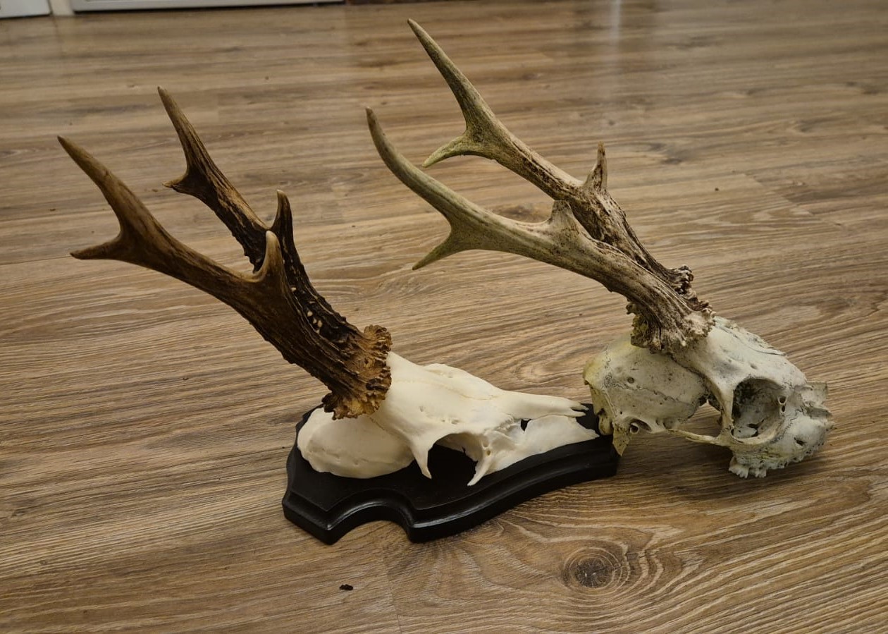 Ik ga langs bij de jachtopzichter. “En, heb je wat gezien? Ja, ik heb er twee!” antwoordde ik, terwijl ik de kofferbak opende. “Dat meen je toch niet echt…” Ik overhandigde hem toen de schedel zonder dat hij in de auto kon kijken. “Zo, dat is jammer want dat is wel een hele beste, maar daar heb jij niks meer aan kunnen veranderen. Mooi dat je zoiets vindt, je denkt wel eens, waar blijven onze bokken.”
