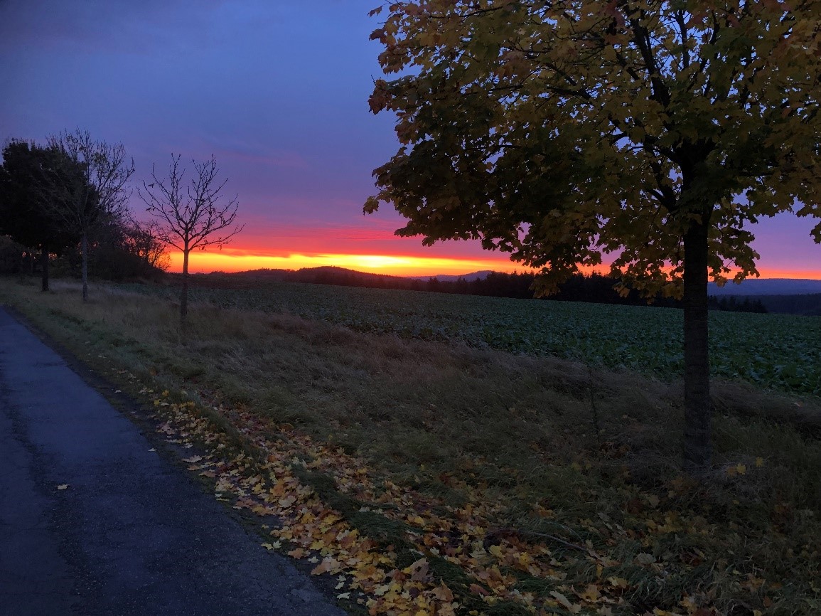 Ik kreeg een werkelijk fantastische plek. Aan het begin van een beek die ook door ons veld loopt en daar wordt ingeklemd tussen twee steile hellingen. Een smalle weide aan één kant van de beek en voldoende zicht want de laatste dagen hadden de bomen in rap tempo hun bladeren laten vallen.
