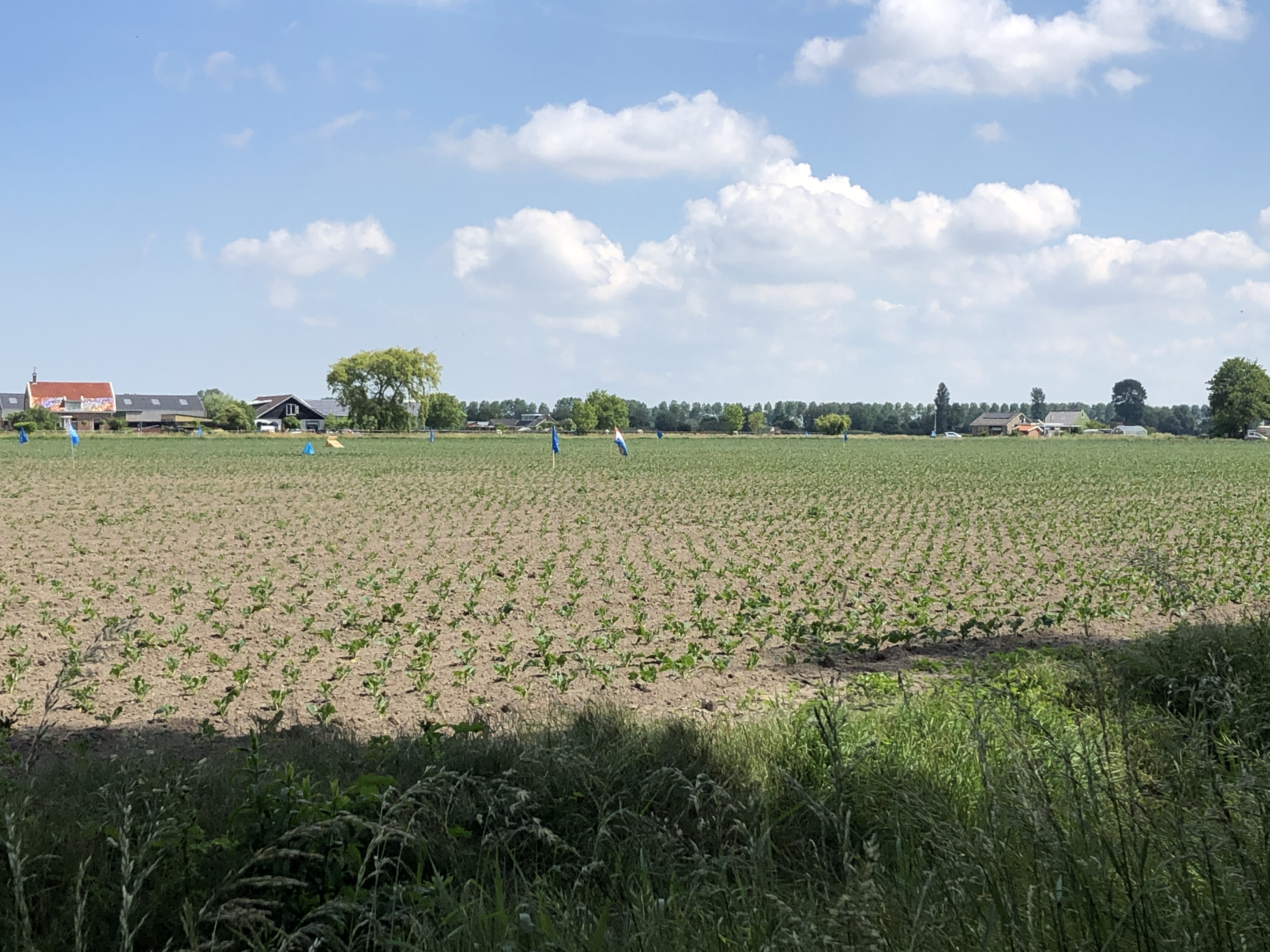 Genadeloos hebben ganzen hier toegeslagen, alleen achteraan op de foto zijn de spruiten behoorlijk opgekomen en oogt het groen. Vooraan proberen de plantjes het nog wel dankzij een extra groeispurt als gevolg van de regen en hoge temperaturen van de afgelopen dagen, maar als het zo doorgaat verliezen de spruiten en de boer hier deze strijd van de ganzen.