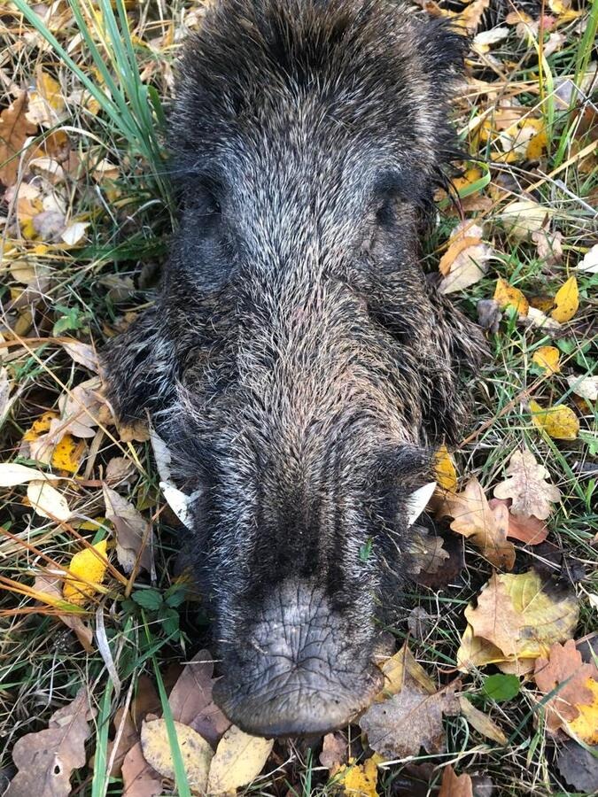 Als ik zijn schoft zie druk ik af, het varken gilt en… is weg.