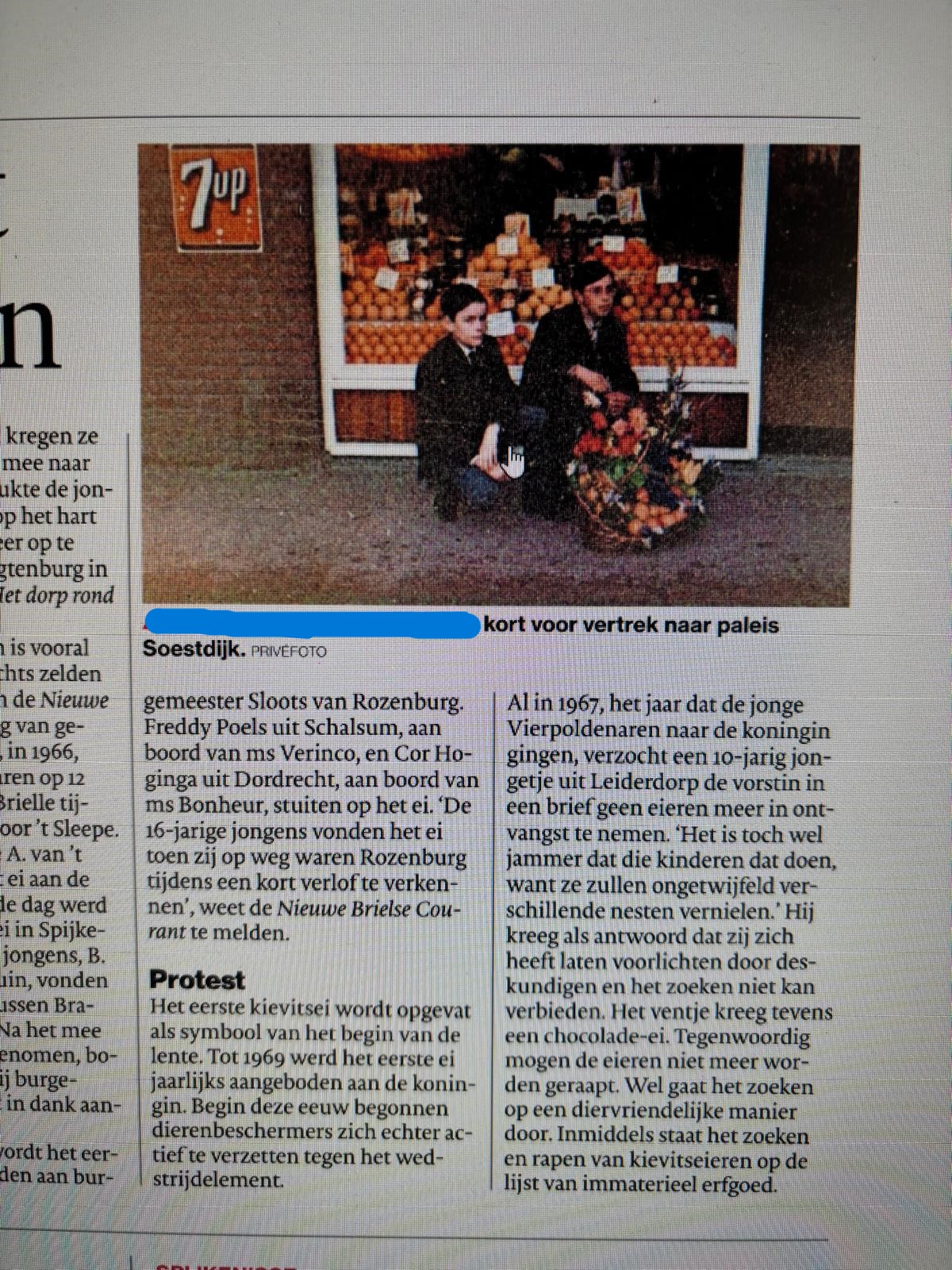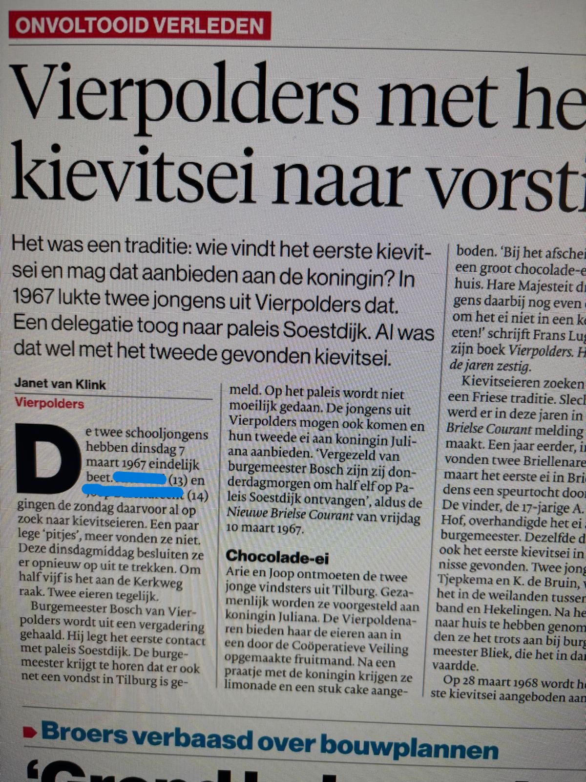 Toen we echter het krantenknipsel op de foto’s lazen bleek dat hij ooit echt op Paleis Soestdijk was uitgenodigd. Maar niet voor het vinden van het eerste maar voor het vinden van het tweede ei. Ook dat krijg je niet geloofwaardig verzonnen.