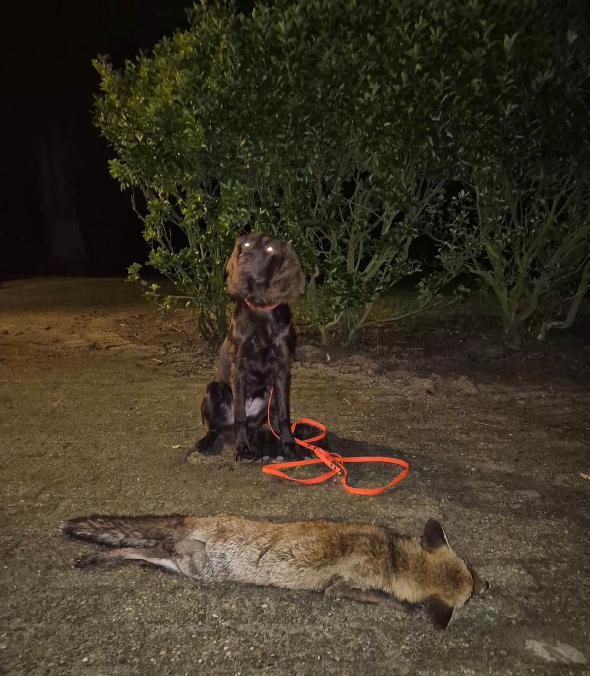 Dat bleek al een paar weken geleden toen S. niet alleen een mooie rekel schoot, maar die ook kon gebruiken voor een geslaagde ‘nazoek’ van zijn jonge hond. Hij wil hem allround trainen om er straks een breed inzetbare en bruikbare jachthond aan te hebben. Het lijkt erop dat dat er in zit, want na eerdere nazoeken op reewild kon hij ook deze roodrok vinden.