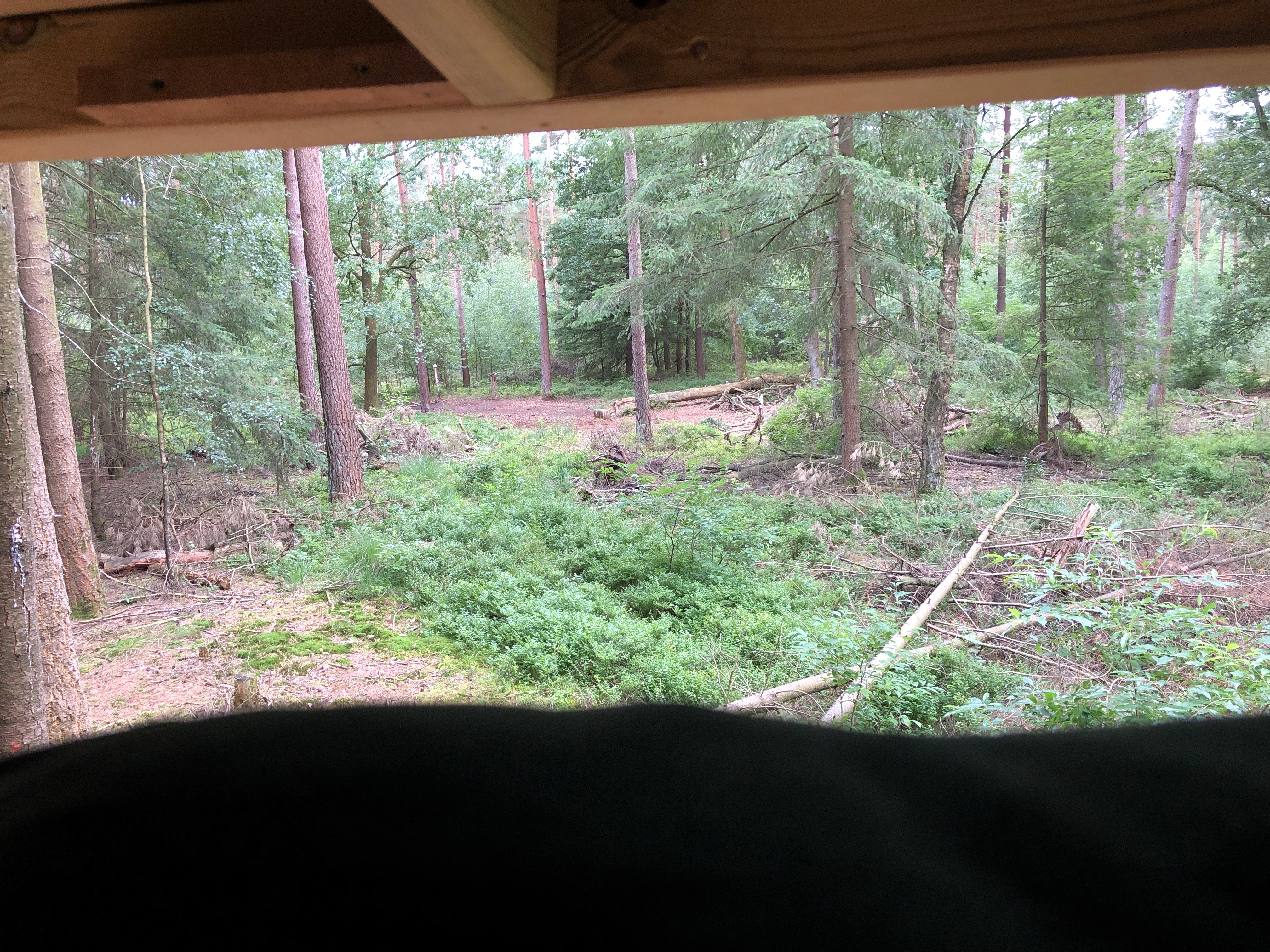 Even later rij ik naar een parkeerplek aan de rand van het bos. En ik loop op mijn gemak, zonder een moment te twijfelen, naar mijn kansel voor deze aanzit. Recht op mijn doel af, ondanks dat de directe omgeving daar ingrijpend veranderd is. Er is rigoureus gedund in het bos en de opslag is nog nauwelijks begonnen het vrijgekomen terrein te heroveren.