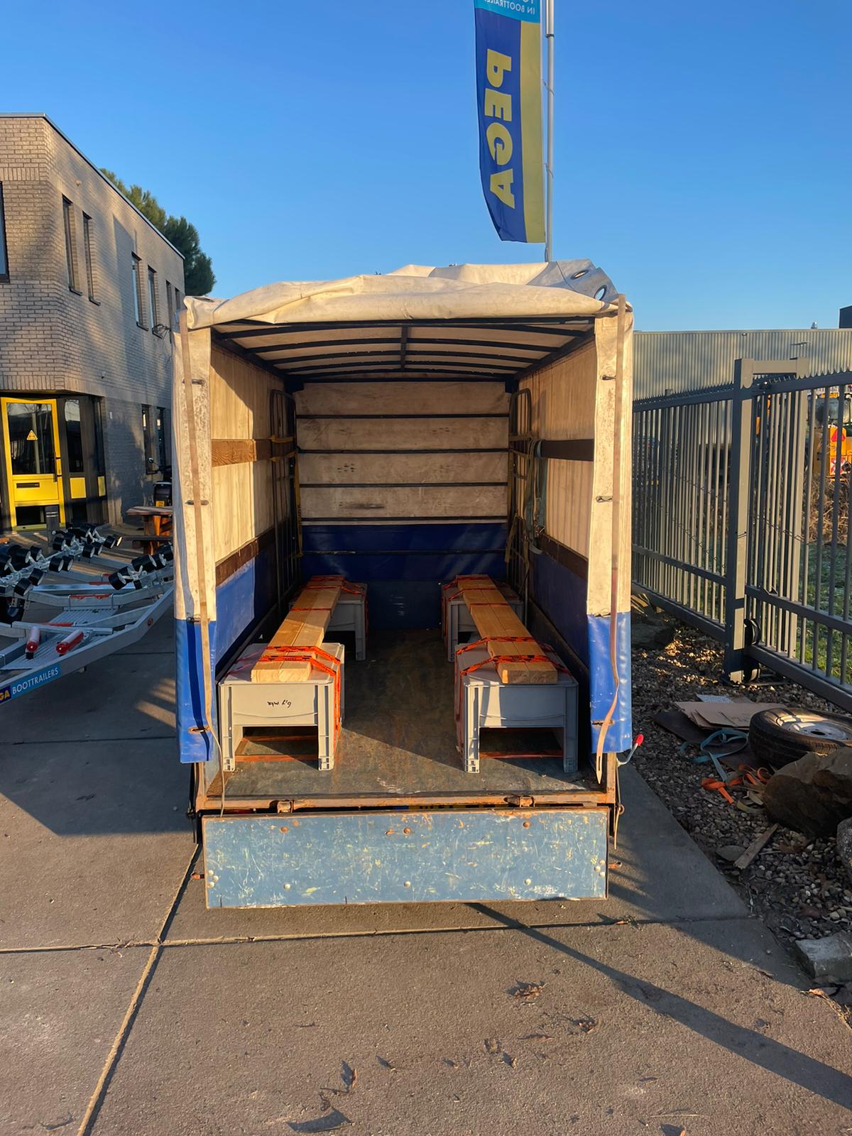 Er is er een die aan zijn knie geopereerd moet worden. Een andere aan zijn heup. Een derde heeft nog naweeën van een hartprobleempje. Het is dus een aardig volle ziekenboeg, hoewel kennelijk zijn ze niet ziek genoeg om deze dag aan zich voorbij te laten gaan. Nou, die drie dus en dan natuurlijk onze bonusgasten, dat zijn dan samen vijf klanten voor de aanhanger die ik speciaal voor het gehandicaptenvervoer heb ingericht”.