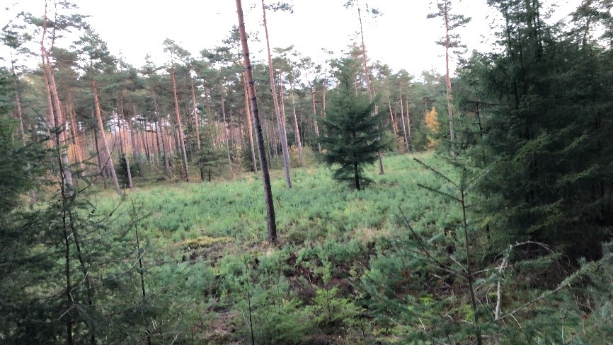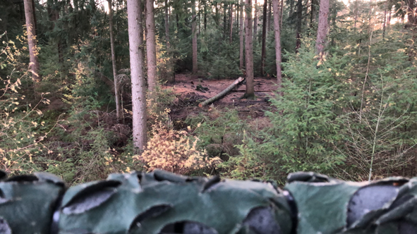 Links, schuin achter mij, is een kaalslag. De naaldbomen in de omgeving hebben inmiddels al voor opslag gezorgd, volgend seizoen zal het zicht daar al behoorlijk minder zijn.