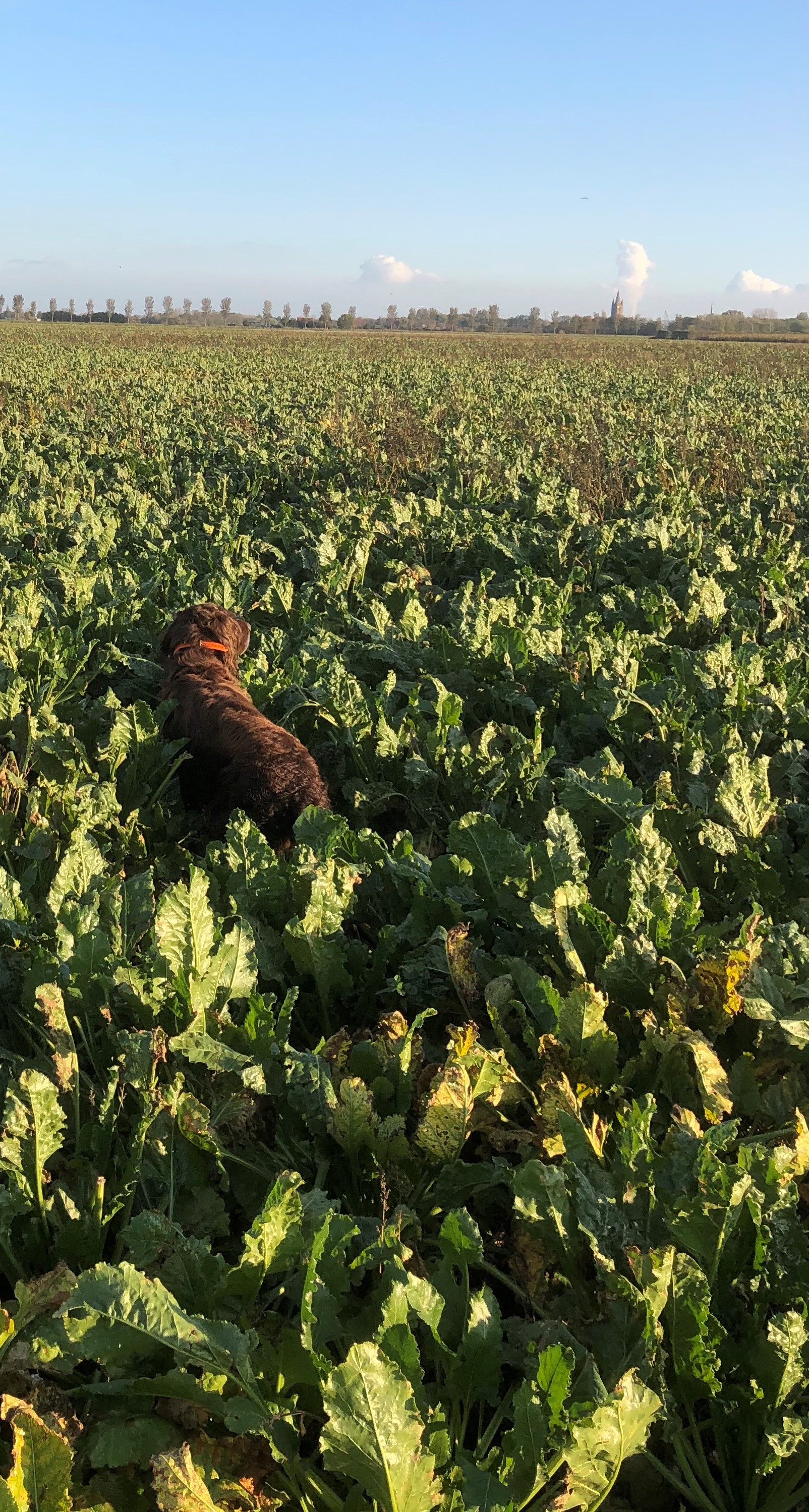 In Zeeland ben ik weer bij C. te gast. Een uurtje of twee in de bieten en groenbemester. Er zijn nog twee gasten, J. groot geworden in de bouwtechniek èn in de wereld van de jachthonden. En M., al een mensenleven zittend magistraat. Hij jaagt niet zelf, maar gaat al jaren mee als drijver. En dan die C., ooit commandant van de Veldpolitie; ik verkeer vandaag in ‘hoge’ kringen. Het is een onderhoudend stel, tijdens de koffie, gebak en mooie verhalen vliegt de tijd om, reden voor C. om ons te wijzen op het doel van de bijeenkomst: jagen!