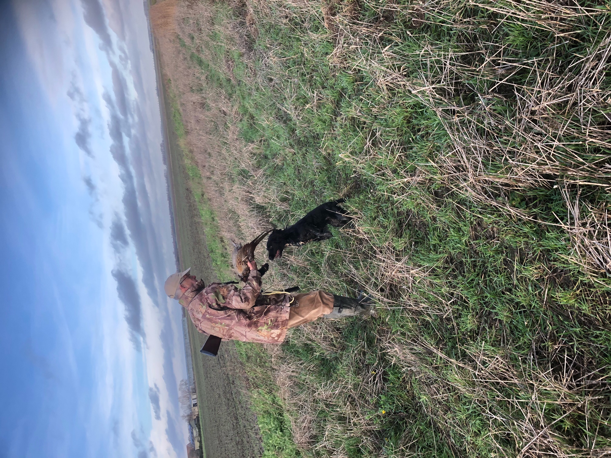 “Lopen,” roept C., ik moet naar de Langhaar om samen met hem op te lopen. “Hij staat niet voor, hij zit te poepen,” antwoord ik. Maar C. reageert niet op mijn opmerking en loopt naar zijn hond. Samen couleren ze en dan gaat een haan op. C. twijfelt geen moment en schiet, de haan vouwt zich samen en wordt even later geapporteerd. De hennen die we opdoen worden gespaard en dit blijkt vandaag uiteindelijk de enige haan, want de rest is ons deze dag te slim af. En dat poepen van de Langhaar was geen poepen, maar blijkt voor hem ook een manier van voorstaan te zijn. ‘Voorliggen’ had ik al weleens gezien, vooral bij Engelse rassen, maar ‘voorzitten’, nee dat was nieuw voor mij, maar het was geen probleem bij deze haan en een paar hennen zette hij later op deze manier prima vast.