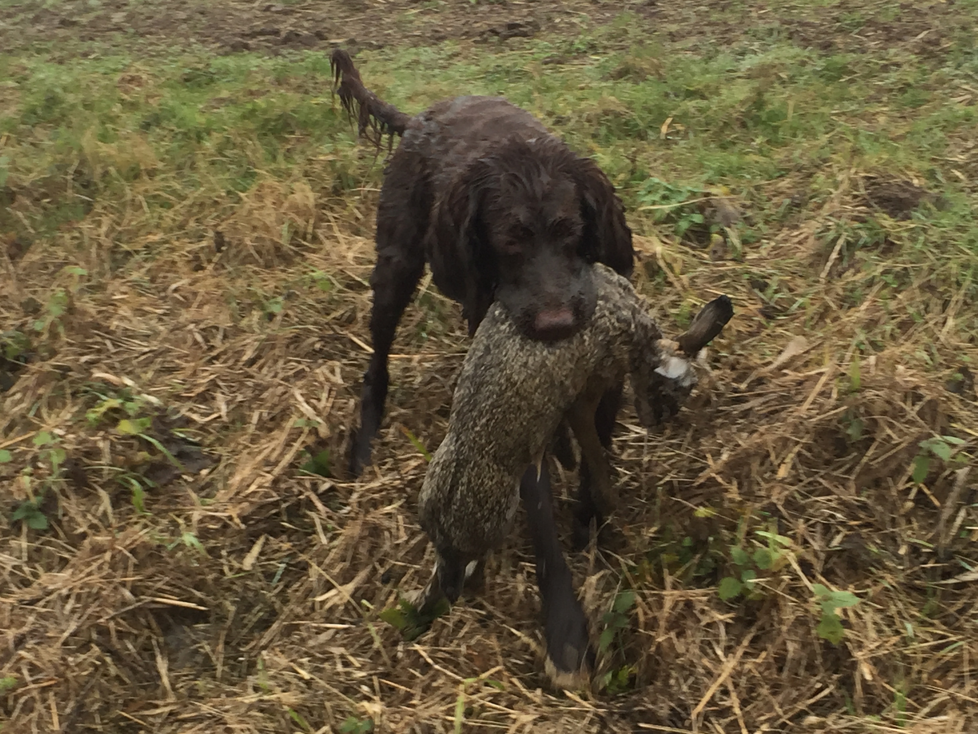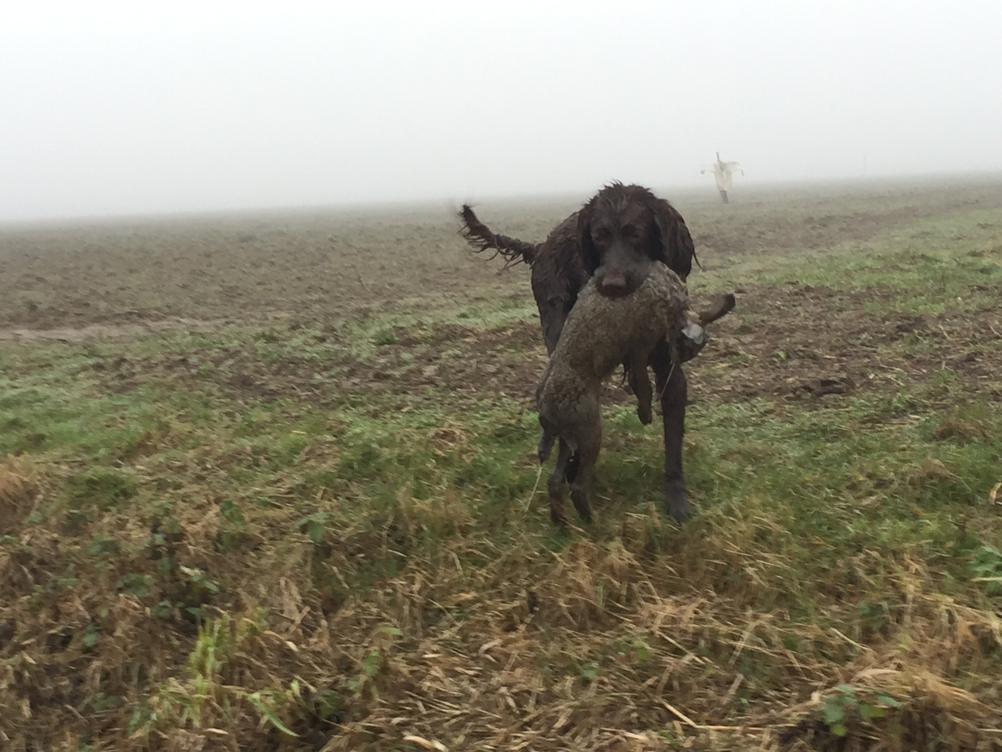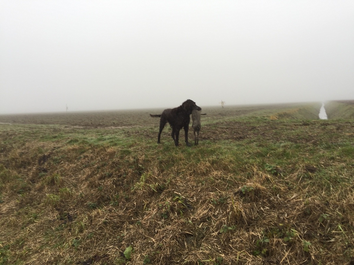 Ontwijkt geweer dat het haas wil aannemen en komt -staart omhoog- door de linie heen mij het haas presenteren. Klasse!