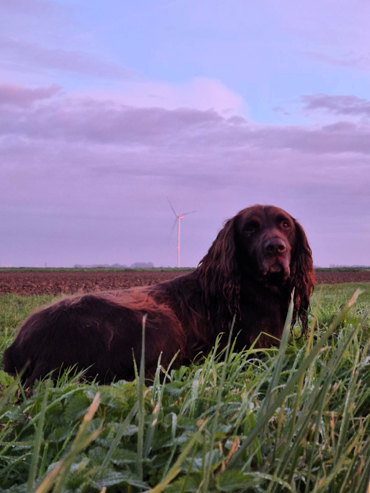Maar dan wordt het stil. Kennelijk hebben de langslapers inmiddels ook de rivier verlaten. En S. begint zich te vervelen, want hij stuurt een foto van zijn jachtmaat. En laat dat nou precies de foto zijn die ik terugzie in het clubblad van de Vereniging Langhaar en die mij aan deze jachtdag herinnerde.