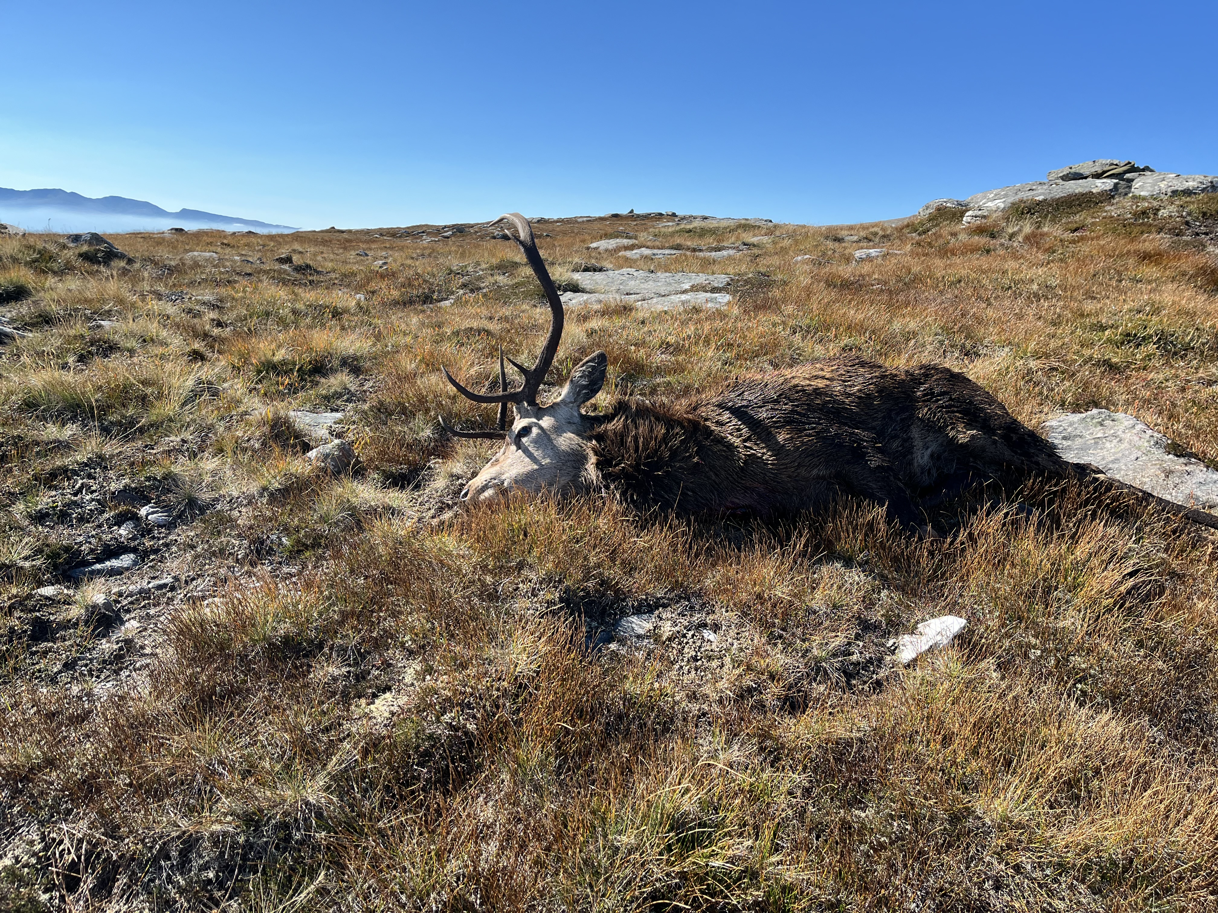 Ik sta er even bij stil, het is een memorabel moment. Dat is natuurlijk elk moment als je een dier doodt, maar dat is het zeker bij een van deze grootte. En dan ook nog onder deze omstandigheden, want zelden moest ik er zoveel voor doen en zoals altijd bij het stalken had het wild een faire kans om ons te slim af te zijn. Alleen waren wij, dankzij de stalker, vandaag slimmer dan het hert.