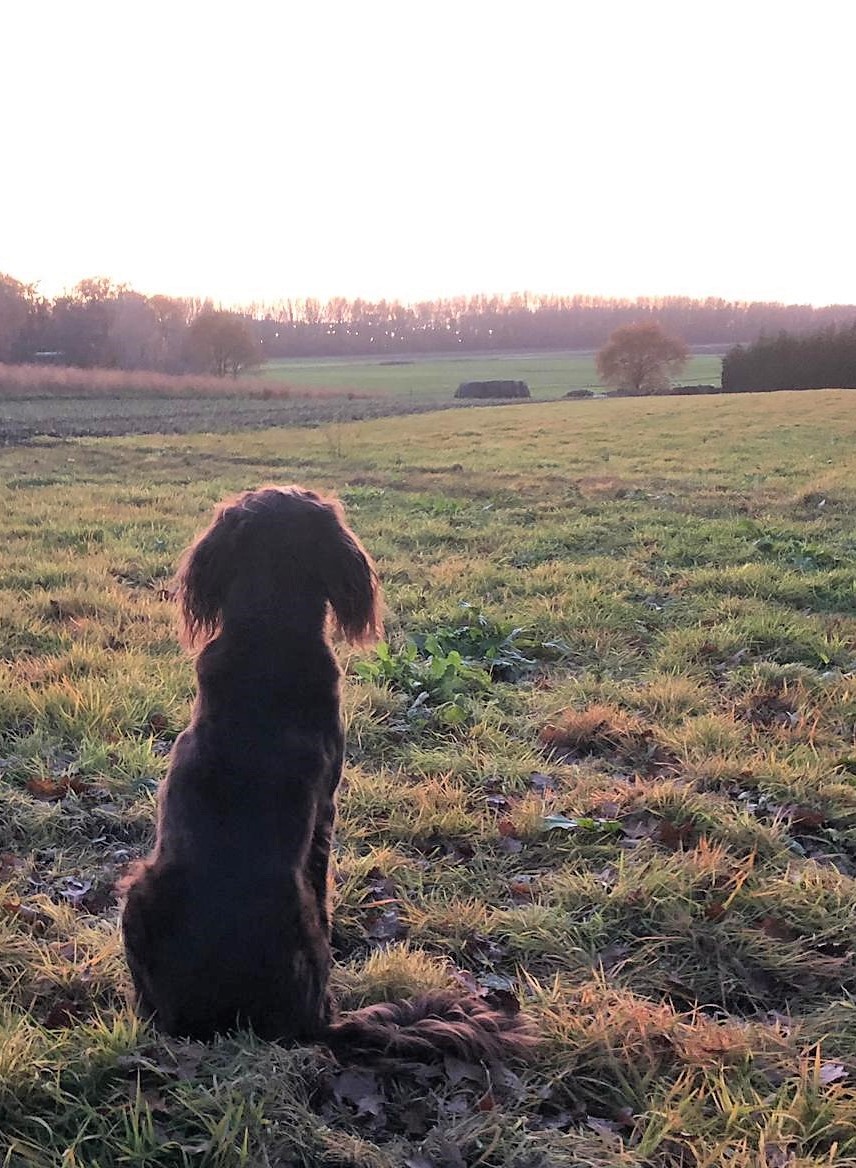 Op een kruising blijf ik altijd even wachten om te kijken wat ze wil, nog wat verder of al richting huis. Zij geeft wel aan wat ze wil. Nou ben ik van de hondenschoolfilosofie ‘hond let op baas’, maar de rollen zijn nu omgedraaid. Zeker nadat ik haar tijdens een ommetje kwijt was. Zoeken, zoeken en ik vond haar in het water. Op een plek waar zij voorheen bijna altijd even een duik nam, maar waar ze nu niet meer uit het water kon komen. Het is nu dus ‘baas let op hond’ geworden.