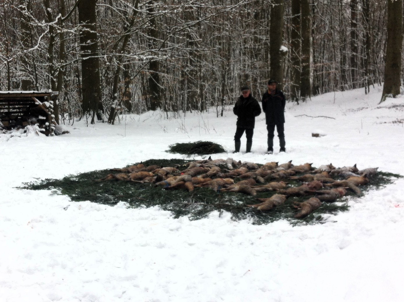 Het is het eind januari, in het vossenweekend dat door de Hegering, de Duitse WBE, wordt georganiseerd. Alle Revieren doen eraan mee. Jammer genoeg zijn de verwachtingen over het resultaat niet zo goed. De laatste dagen is het mooie pak sneeuw dat er lag, al behoorlijk weg gedooid. En de ervaring leert dat een pak sneeuw bijna een voorwaarde is voor een mooi groot tableau.