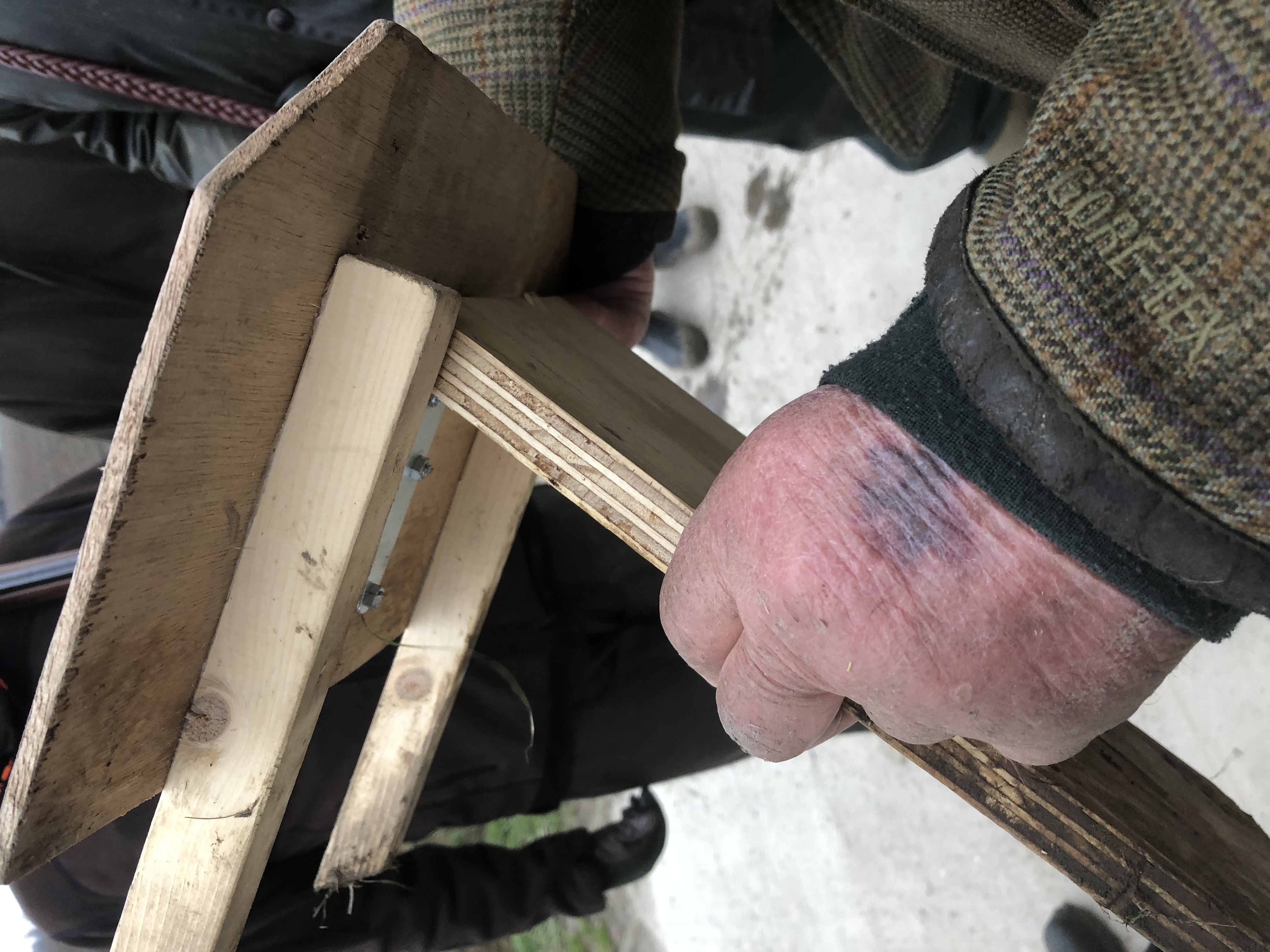 L. is een bijzonder aardige kerel, uitvinder van een soort stoeltje om op post in slootkanten te kunnen zitten. Ideaal, ik ga ze ook maken.