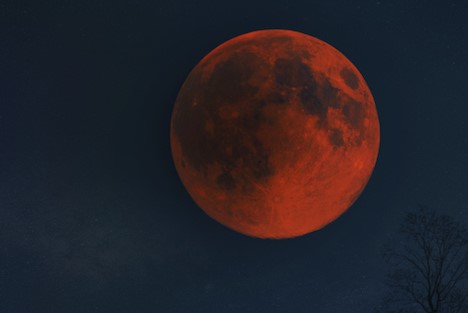 Het is inmiddels bijna half zes, de maan staat nog laag boven de horizon en de opkomende zon geeft heel langzaam steeds meer licht. Maar de maan lijkt van kleur te zijn veranderd, hij is niet meer geel maar meer roodachtig.
