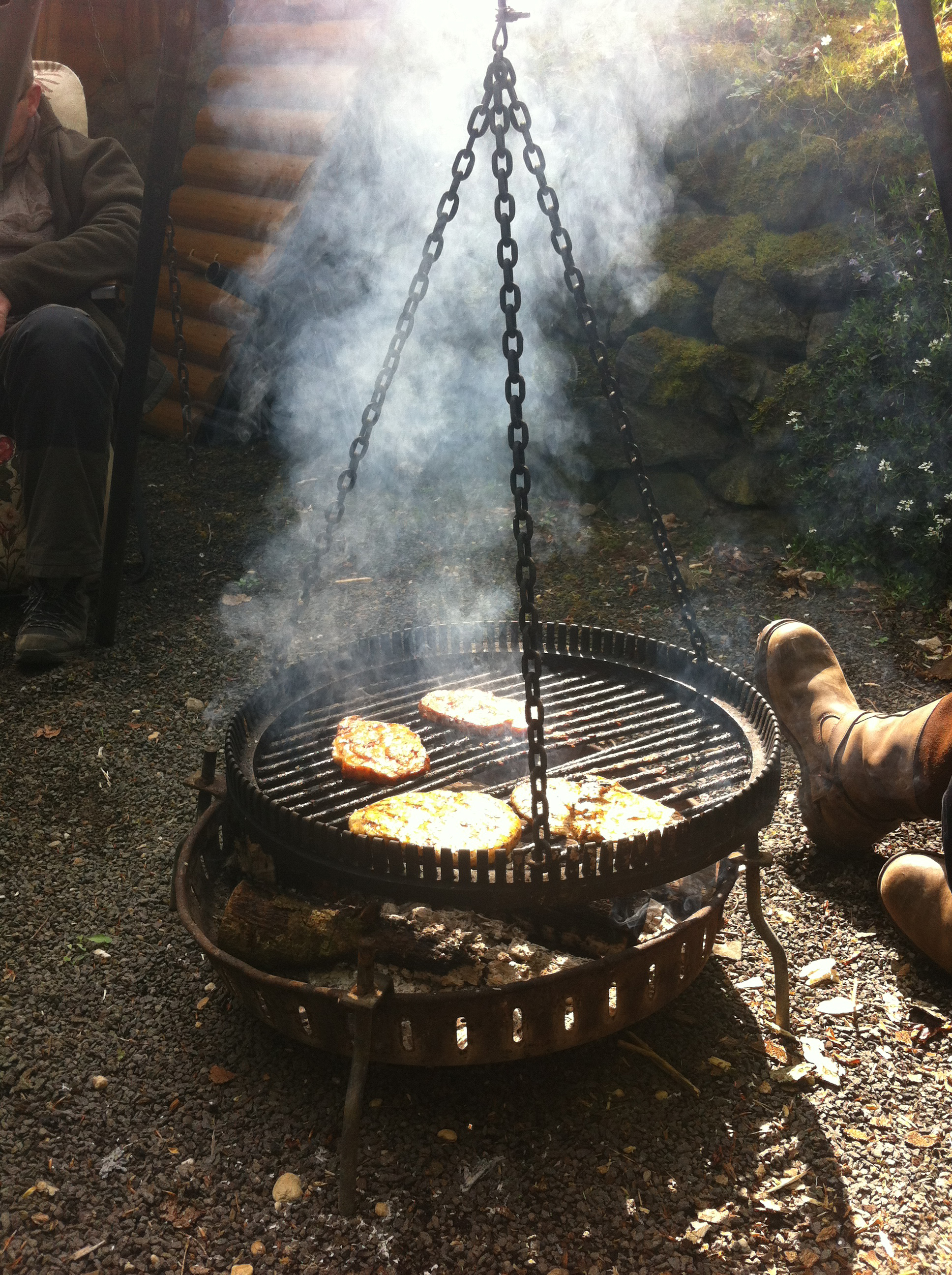 Om 9 uur ga ik naar de ontbijt-BBQ. F. en B. zijn er al. F. heeft de hele nacht geslapen en niets gezien, zegt hij met een lach. B. zat, samen met zijn zoon, in het bos en heeft alleen vroeg in de ochtend een vos gezien.