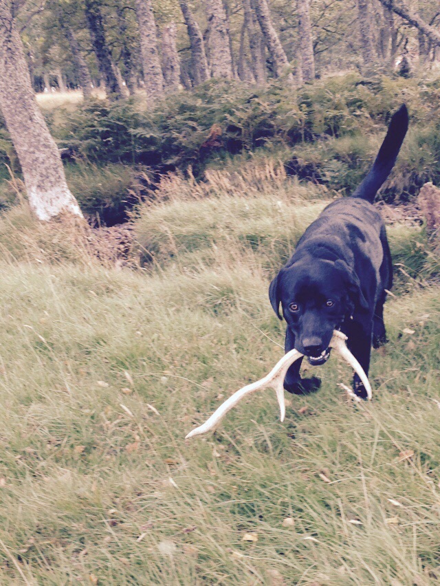 Van mijn pogingen om de labrador Ollie van een ongemanierde hond er een te maken die niet alleen zeer gezeglijk is, maar ook nog eens eentje die hertengeweien kan vinden èn apporteren maakte ik al eens een verhaaltje: Ollie, de geweienhond. Op dat punt was mijn missie dus geslaagd.