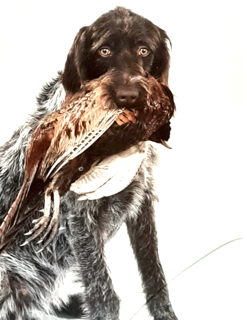 Het klopte want even later kwam de hond met de fazantenhaan in de vang aangelopen en gaf hem keurig af. Wat was ik trots op die hond zeg! En ook niet meer kwaad op haar.