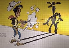 Zo zitten we even later dicht opeen op een laddertje. R. is als eerste naar boven geklommen en heeft rechts op het bankje plaatsgenomen, Daar heeft hij vast niet over nagedacht, want als rechtshandige schutter is dat natuurlijk de beste plek in verband met de extra stabiliteit die het leuninkje je daar dan geeft. Ik was al niet van plan om te schieten, maar nu staat mijn besluit vast. Als er iets te schieten valt, dan moet R. dat maar doen. Om discussies te voorkomen, bewaar ik het uiten van mijn besluit tot het moment suprême. Omdat R. ook wel bekend staat als Lucky Luke, de man die sneller schiet dan zijn schaduw, heeft hij dan nog tijd genoeg om verantwoord tot schot te komen.